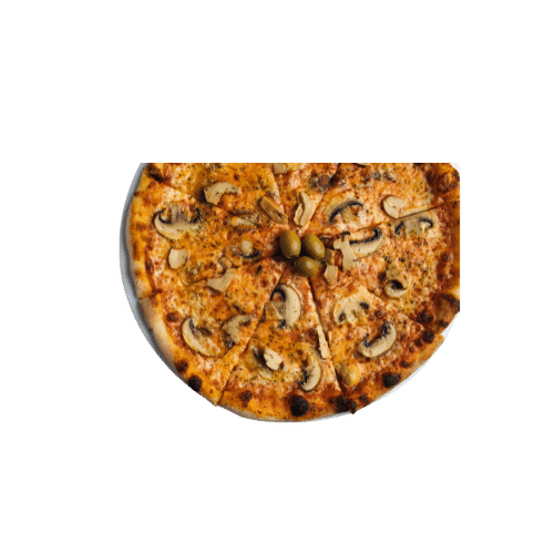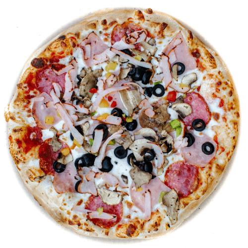 Met napoletana sauce, olijven, champignons, paprika en artisjok